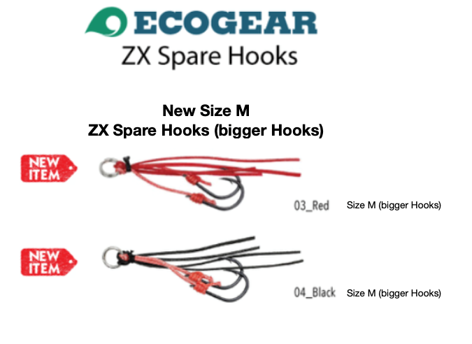 Ecogear ZX Spare Stinger Hooks (Size M) are perfect for replacing trebles and single lure hooks. Especially on Surface lures. Not only will these hooks satisfy the needs of ZX anglers but will also double as 'trailer' hooks for many anglers looking for weed resistance qualities when modifying lures.