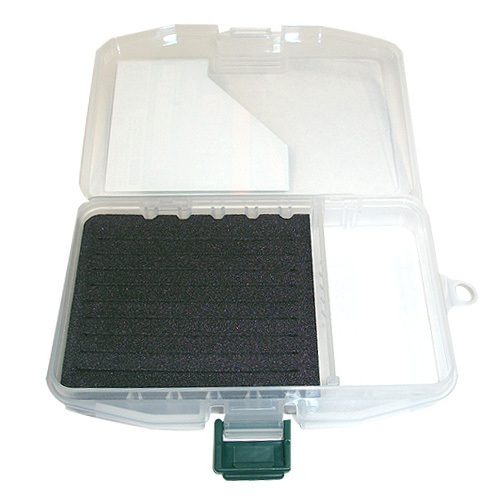 The Meiho Slit Form F7 is an awesome plastic case for your fishing supplies. This hinged lid case features a foam insert for hooking on your fishing lures and a small compartment section for other fishing supplies. This compartment section comes with a removable divider for variable compartment sizes.