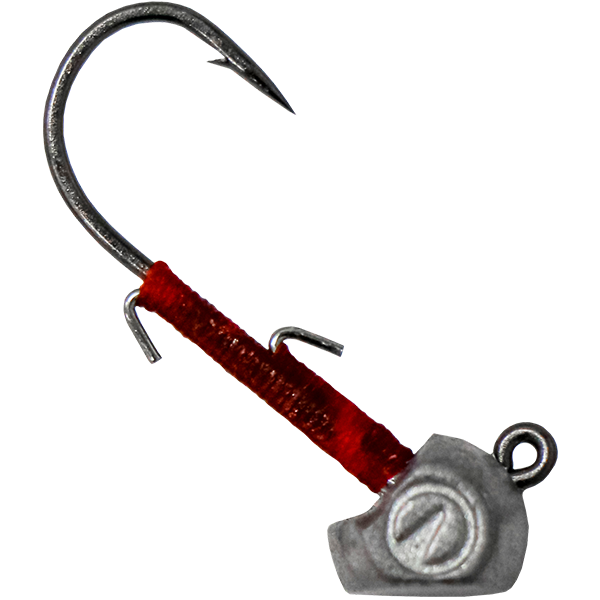 Specialised shape enables the attached soft bait to stand upright at rest. Custom keepers for great holding power on T.P.E material and all other soft baits. Hook shank is tightly wrapped with red thread to securely hold wire keepers in place.