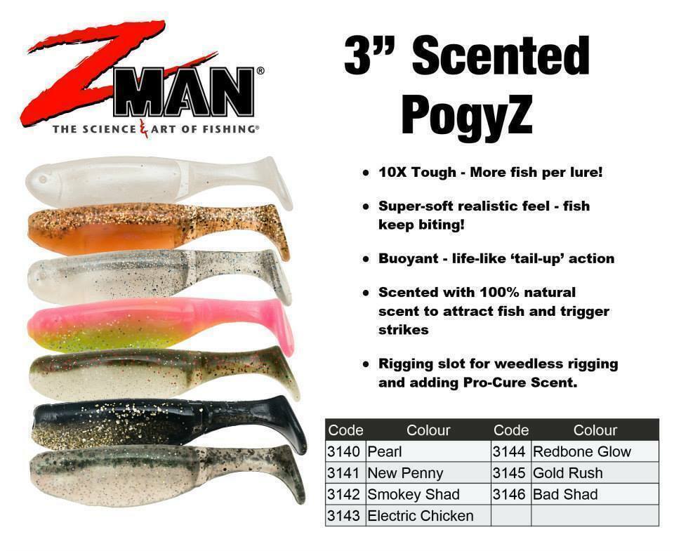 The inclusion of a belly slot makes for effective weedless rigging and is also ideal for adding a squirt of Pro-Cure Super Gel scent. Requests for a pogy style plastic in the ZMan range have come from anglers fishing the northern estuaries, those chasing bass in impoundments with bony bream populations and anglers chasing flathead in the southern lakes, rivers and estuaries, so the 3? Scented PogyZ is sure to prove itself as a versatile presentation.
